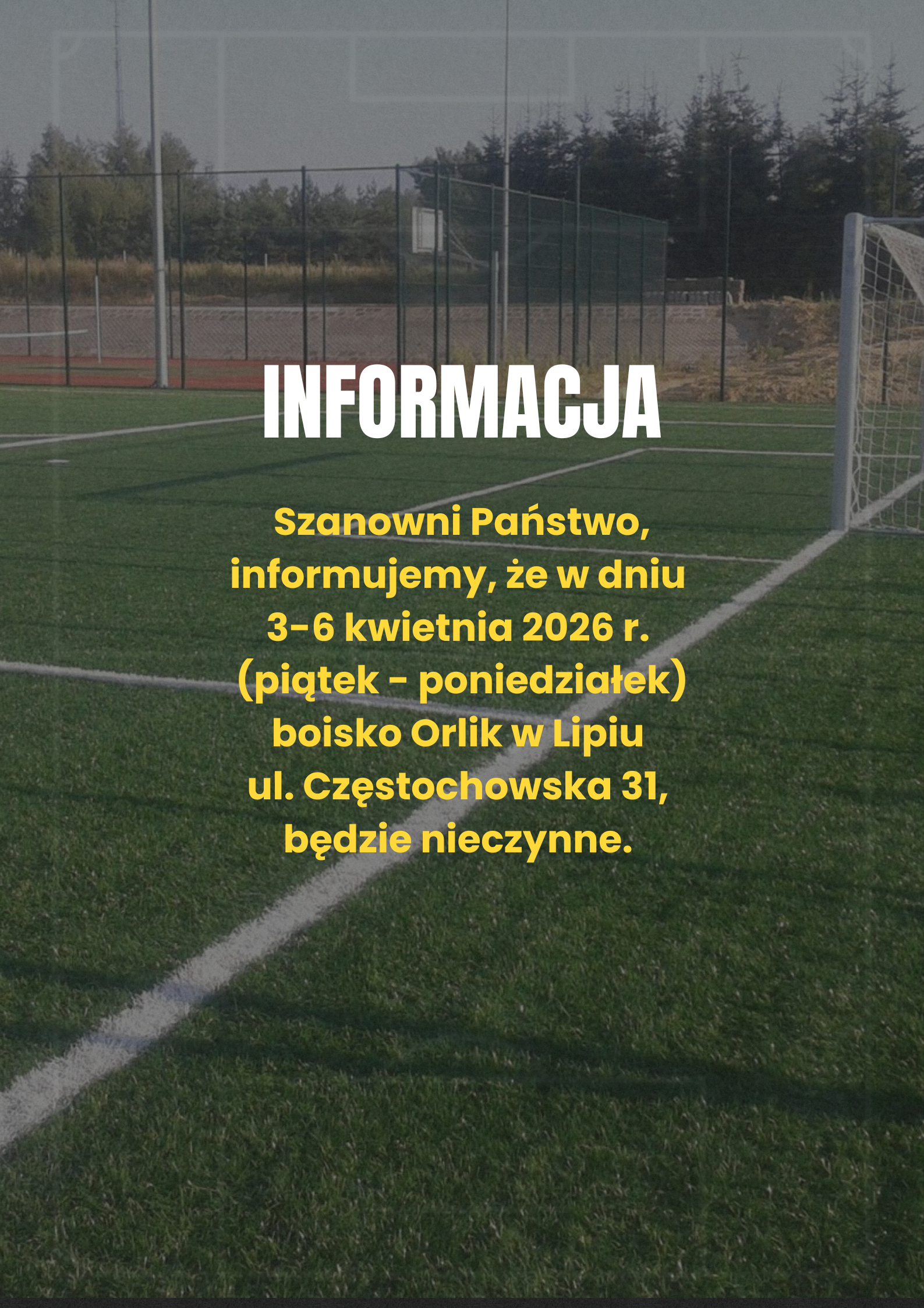 Informacja o godzinach otwarcia boiska Orlik w Lipiu