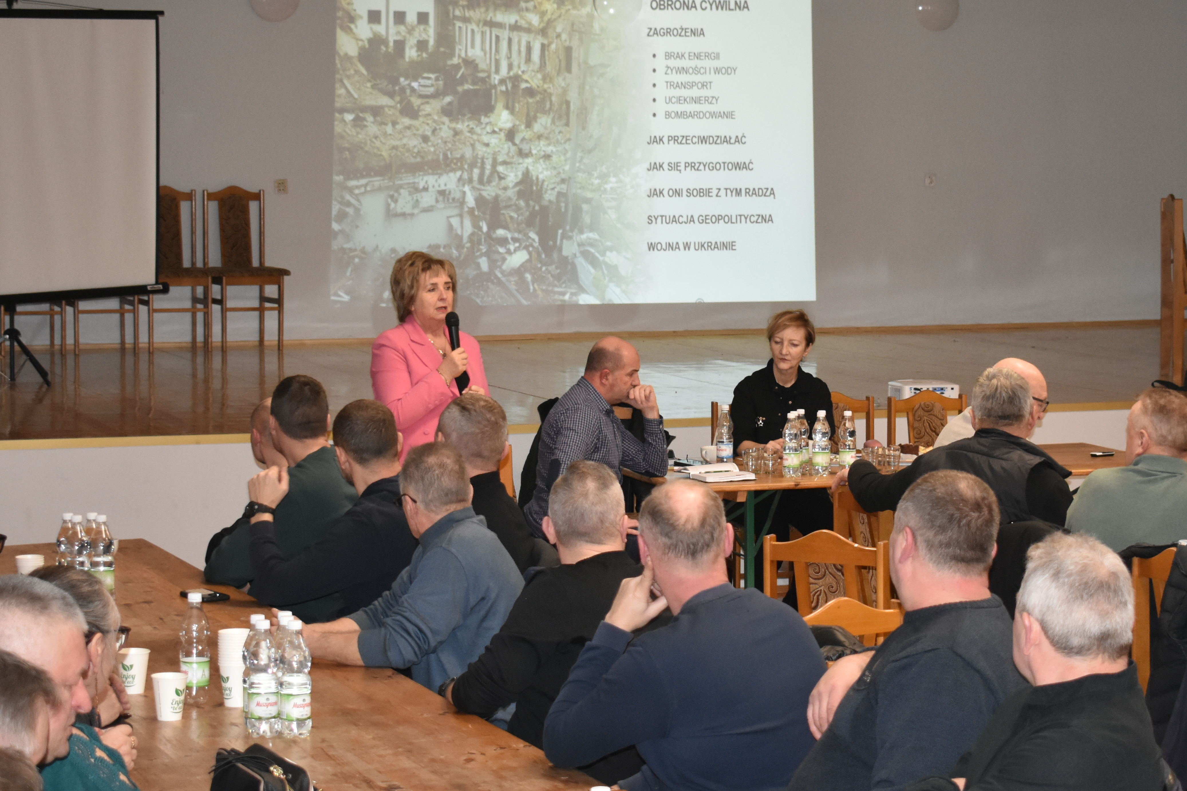 10 lutego 2026 roku w sali OSP w Szyszkowie odbyło się spotkanie z udziałem przedstawicieli społeczności i władz gminy, w którym wzięły udział osoby znające z bliska wojnę na Ukrainie. Osoby te dosadnie przedstawiły zagrożenia dla ludności, z których większość z nas nie zdaje sobie sprawy, a które pojawiają się w czasie konfliktu zbrojnego.